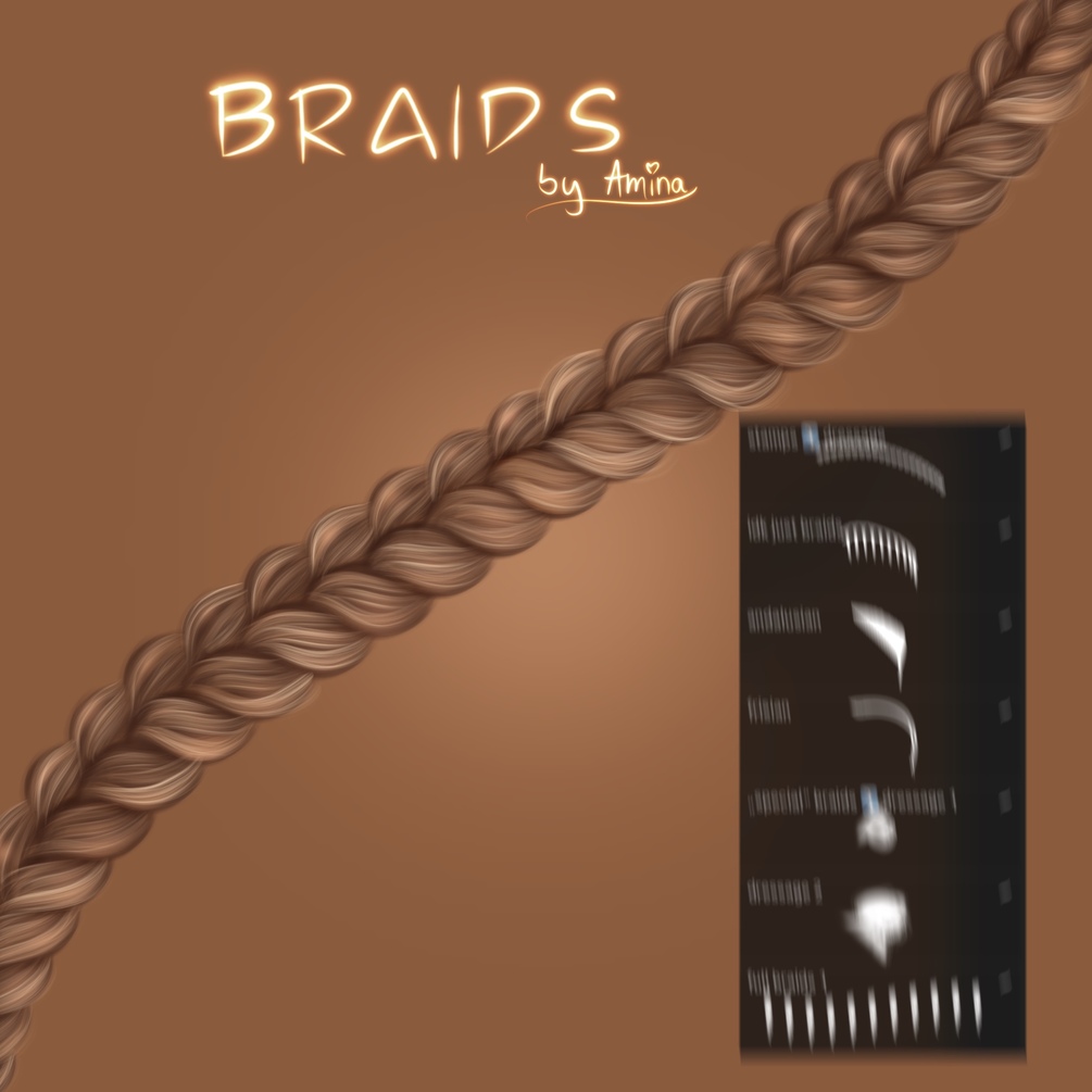 Hello, nice that you found this brushpack! In this pack you will find braid brushes and stamps. Some of these brushes can also be found in my soft hair pack, so don't be surprised if some of them seem familiar to you. So, the weird one leaves you alone now, have fun with the brushes!